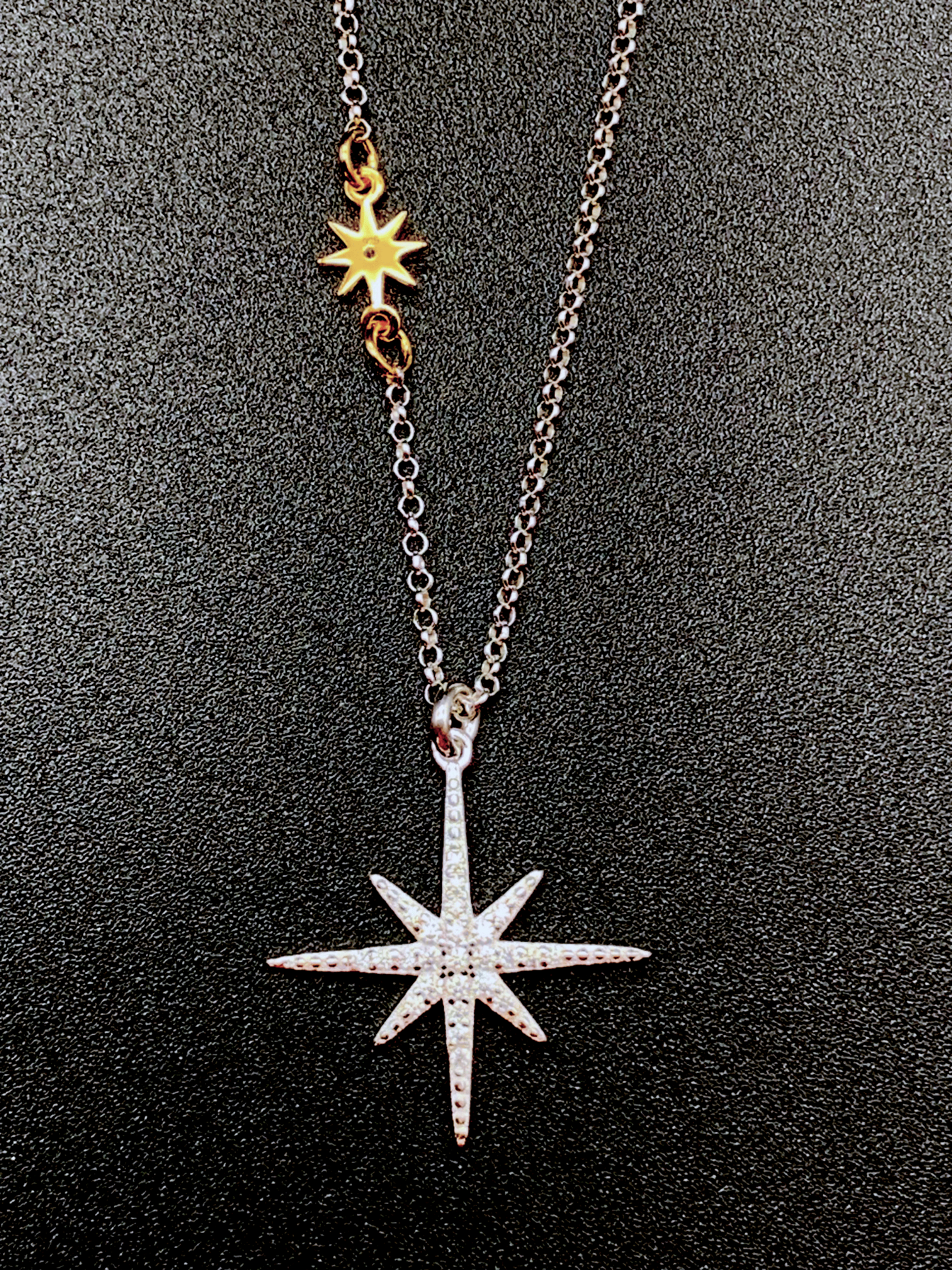 This stunning sparkling sterling silver star necklace brings the beauty and tranquility of night sky close to the heart.