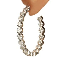 Our best-selling Baroness Collection NEEDED a hoop. With bezel-set simulated diamonds the Baroness 1.25” Hoops dazzle from all angles and in the perfect size to be worn no matter the occasion, day or night.