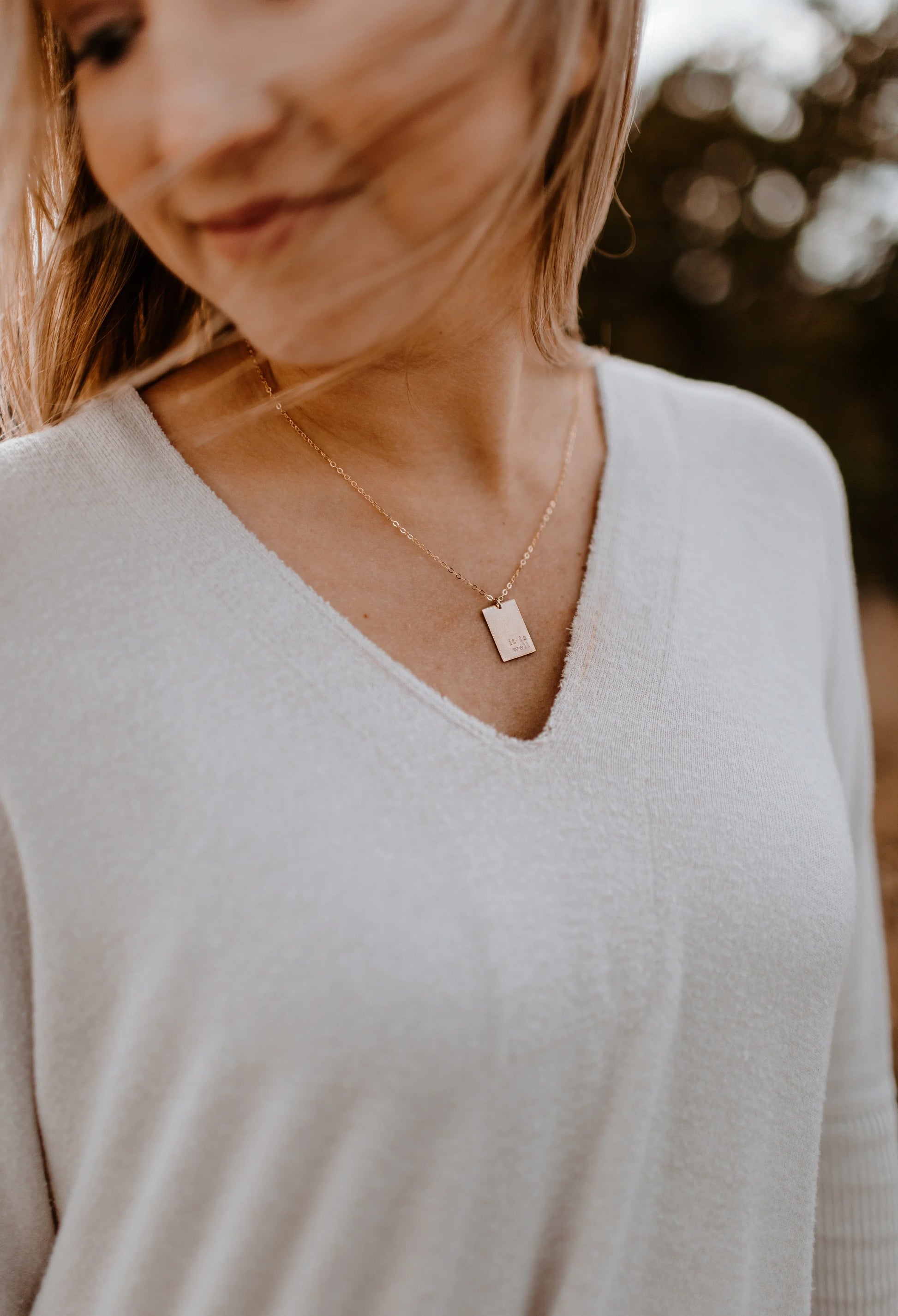 Your favorite hymns and all their beauty meet handcrafted jewelry. .25x.5" sterling silver or 14kt gold filled tag hand stamped on an 18" chain Lyrics to Hymn printed on back of linen card.