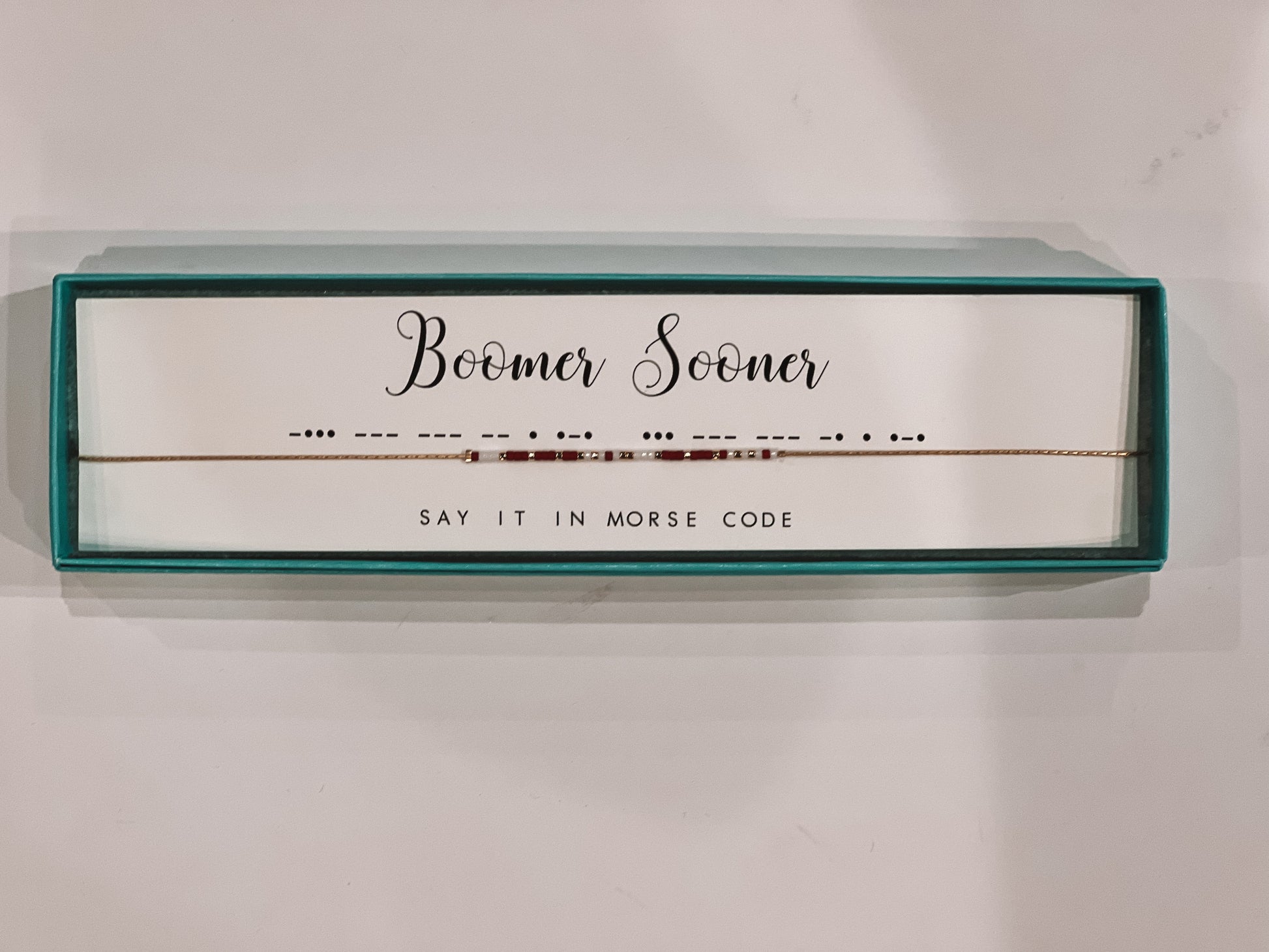 We’ve got spirit, how ‘bout you? Our collegiate collection of morse code necklaces celebrates each university in their custom colors, which makes this perfect for accessorizing on game days or any day! Boomer Sooner!