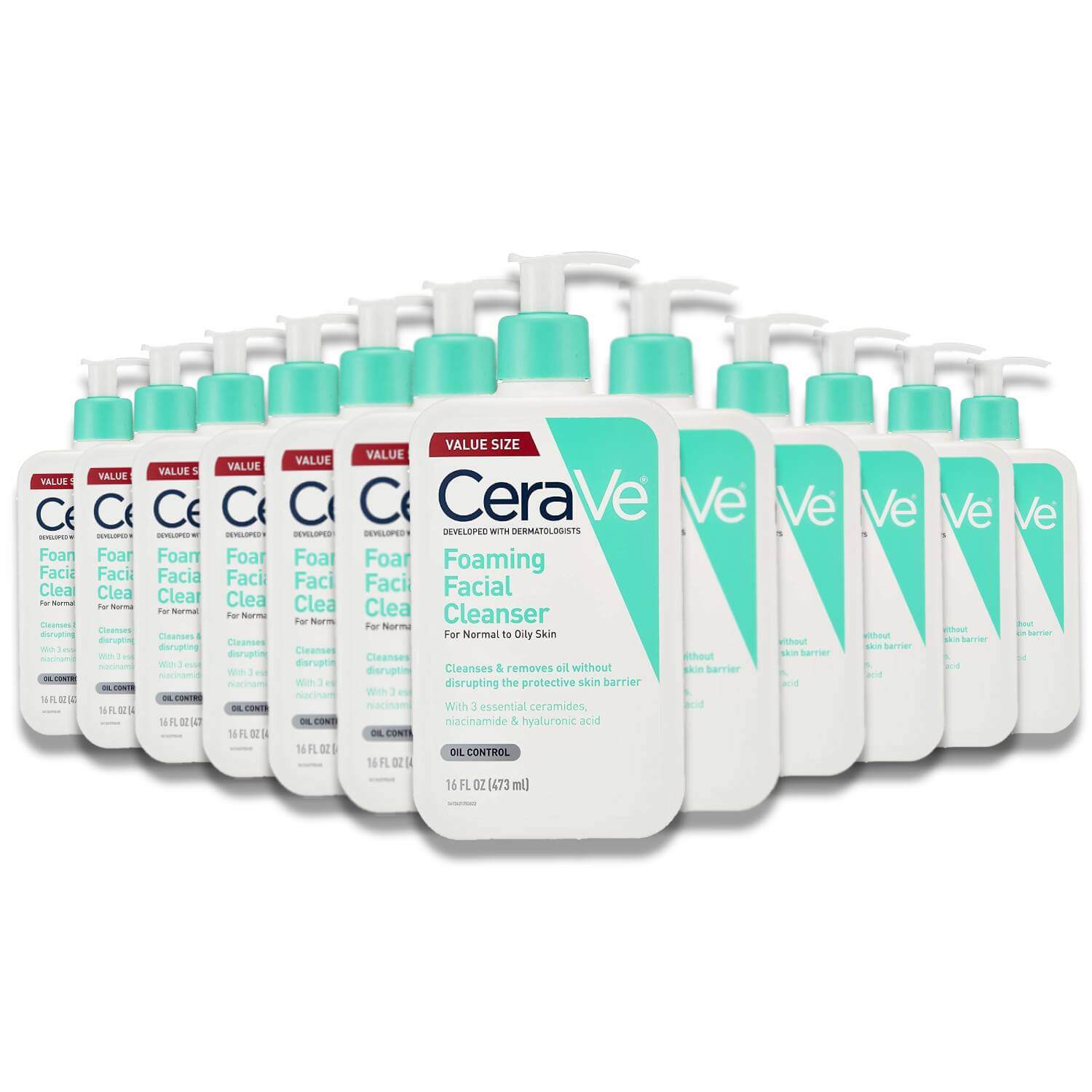Elevate your daily skincare routine with CeraVe Foaming Face Wash. This 12-pack includes generous 16 oz cleansers, each formulated for normal to oily skin. The foaming action removes excess oil, dirt, and makeup without disrupting the skin's natural barrier. Infused with three essential ceramides, this face wash helps to maintain skin health and leaves your face feeling clean and refreshed. Suitable for daily use, CeraVe Foaming Face Wash is a dermatologist-recommended choice for maintaining healthy-looking skin. Order now to enjoy the benefits of gentle yet effective cleansing with CeraVe Foaming Face Wash - 16 oz - 12 Pack.