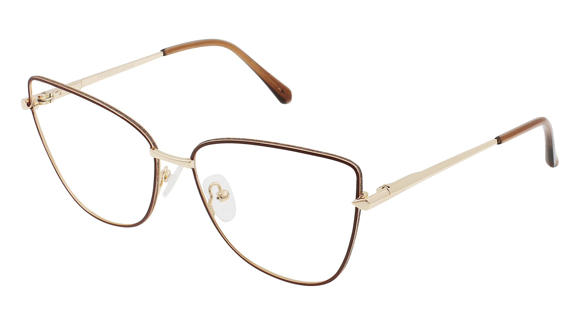 - Ghazaleh?features a cat eye shaped frame in a gold and brown colorway.?