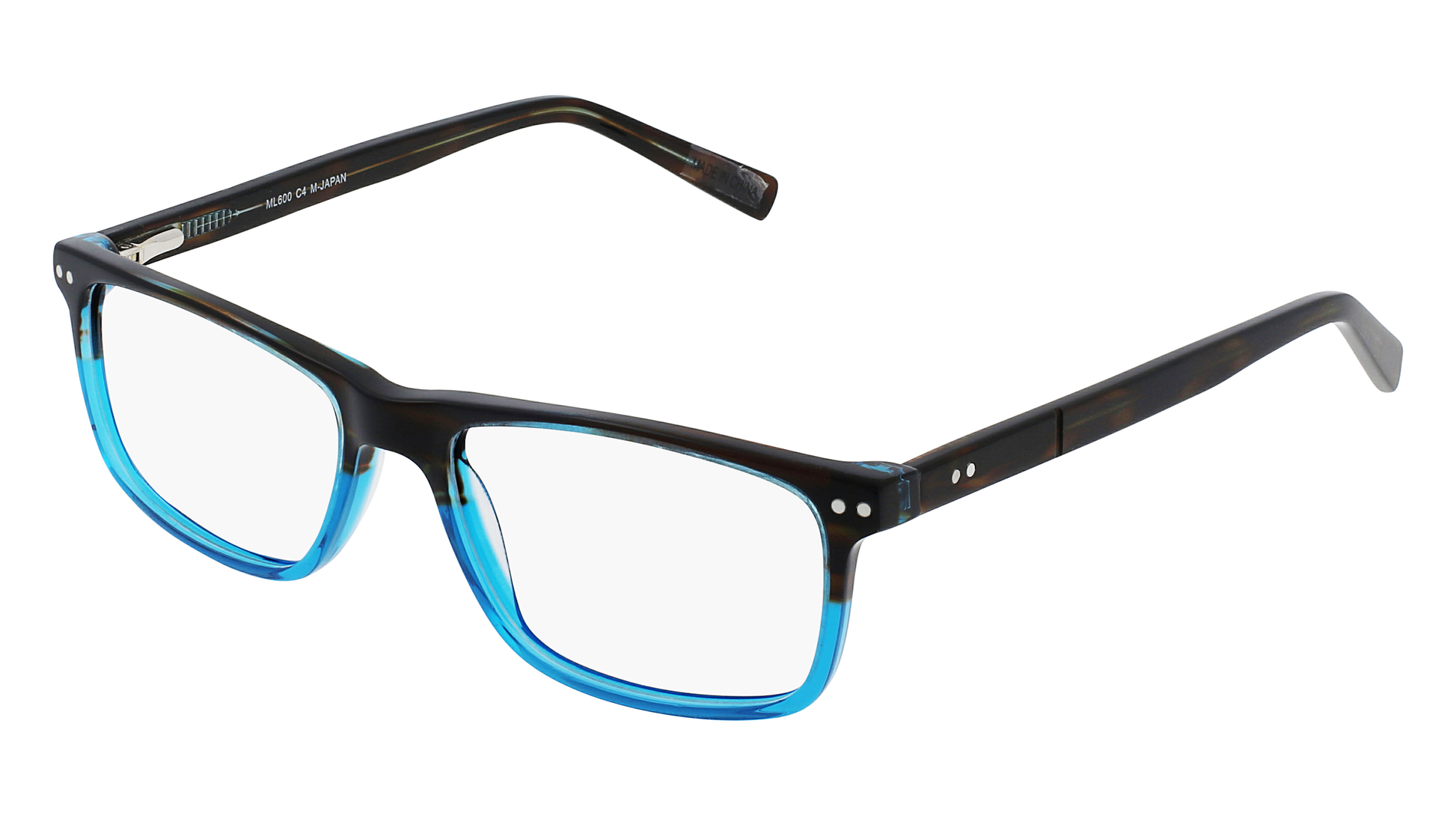 - A Fr!day frame featuring rectangular lenses with a brown to blue fade on the frame.