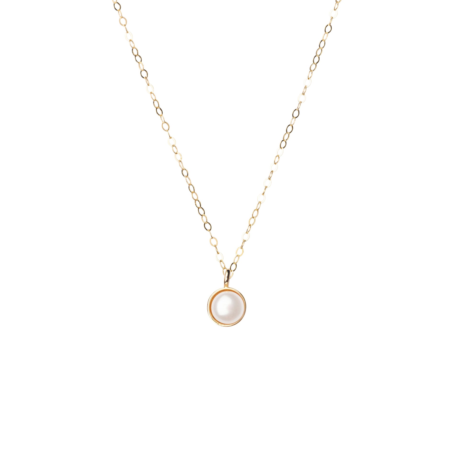 This lustrous pearl is the centerpiece of this delicate pendant drop necklace. Strung on 14k Goldfill chain, it won't tarnish or change colors, even with daily wear. Our necklace chains also come with an adjustable slider, so it can be worn as short as 16" or as long as 22".