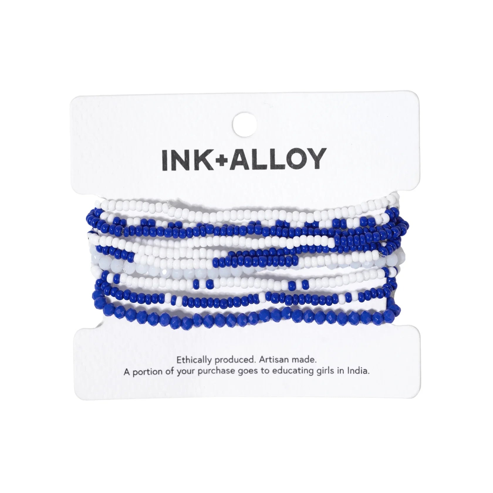 Sage color block beaded 10 strand stretch bracelets blue + white