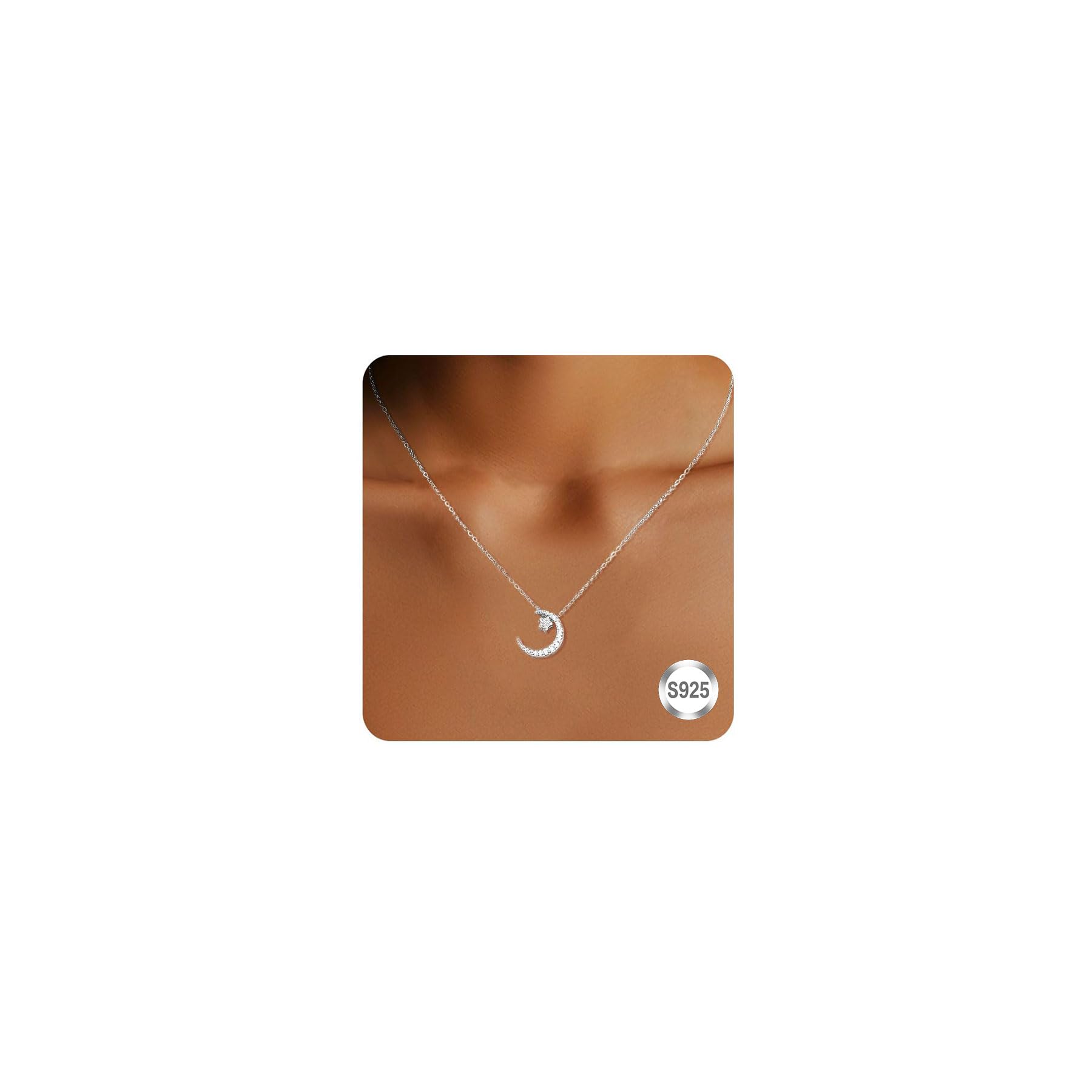 SeanLov Sterling Silver Crescent Moon Star Necklace Dainty Cubic Zirconia Simple Trendy Moon Pendent Necklace for Women Girls Wife Mother as Daily Wearing Delicate Minimalist Jewelry