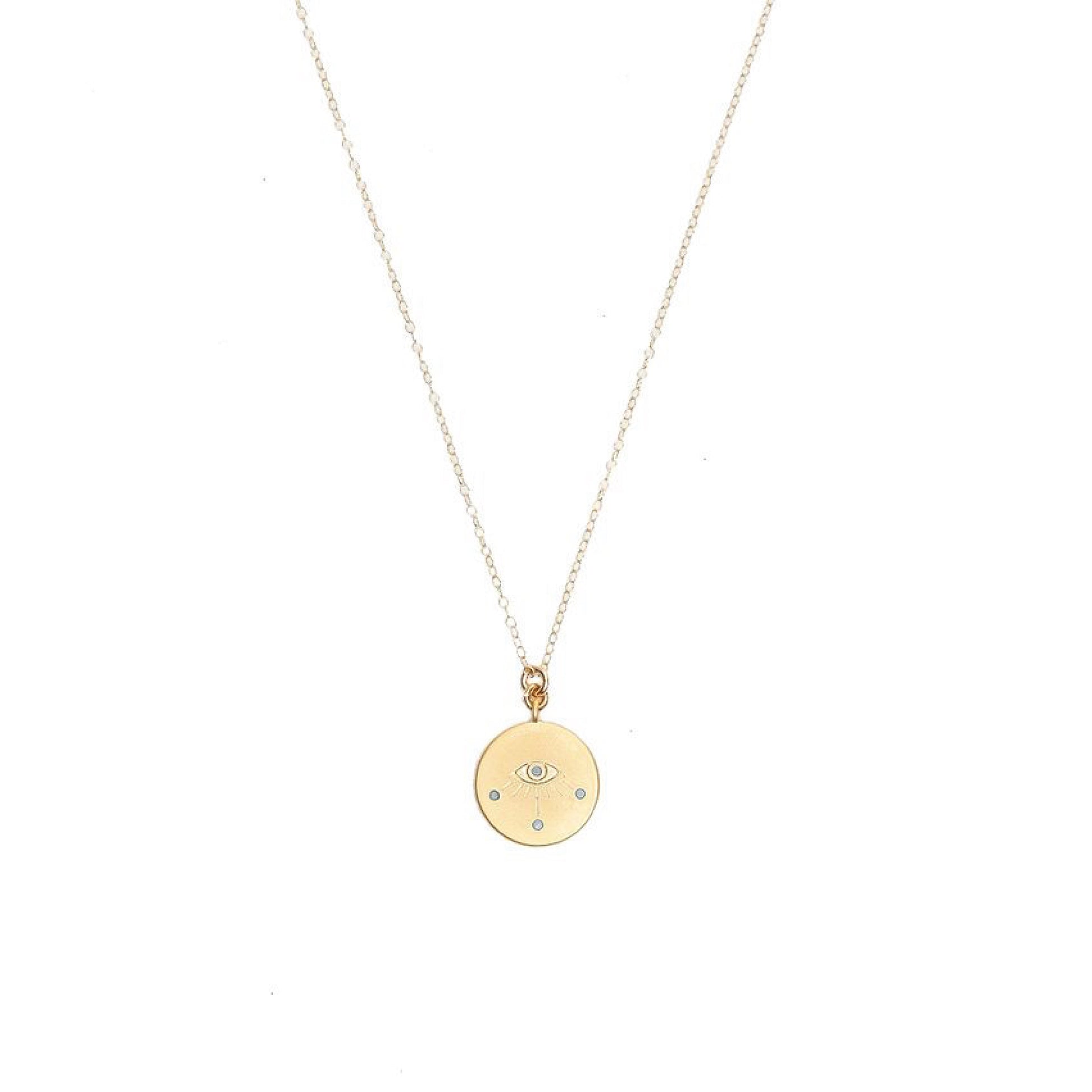 Made of turquoise and gold-plated brass, Kicheko's turquoise eye charm is inspired by the talismans and symbols we are drawn to and wear to express self.