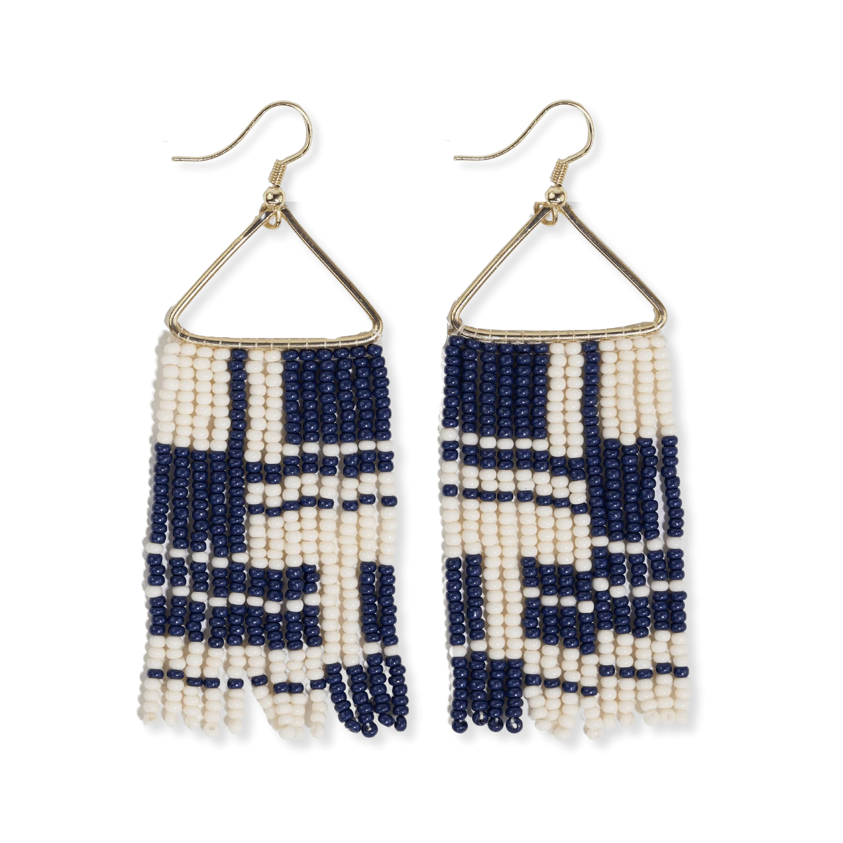 Whitney Shifting Blocks Beaded Fringe Earrings Navy